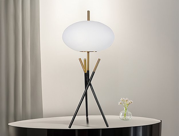 Transform your space with this bold and artistic lighting solution that seamlessly fuses minimalism with modern luxury. Featuring a sleek, tripod-style base in a striking black and gold finish, this lamp exudes a refined elegance. Its centerpiece is a smooth, frosted elliptical shade that casts a soft, ambient glow, creating a warm and inviting atmosphere. The dynamic contrast of the slim, angled rods and the gentle curves of the shade adds a touch of avant-garde charm. Perfect for adding a statement piece to any room, this design is both a functional light source and a work of art.