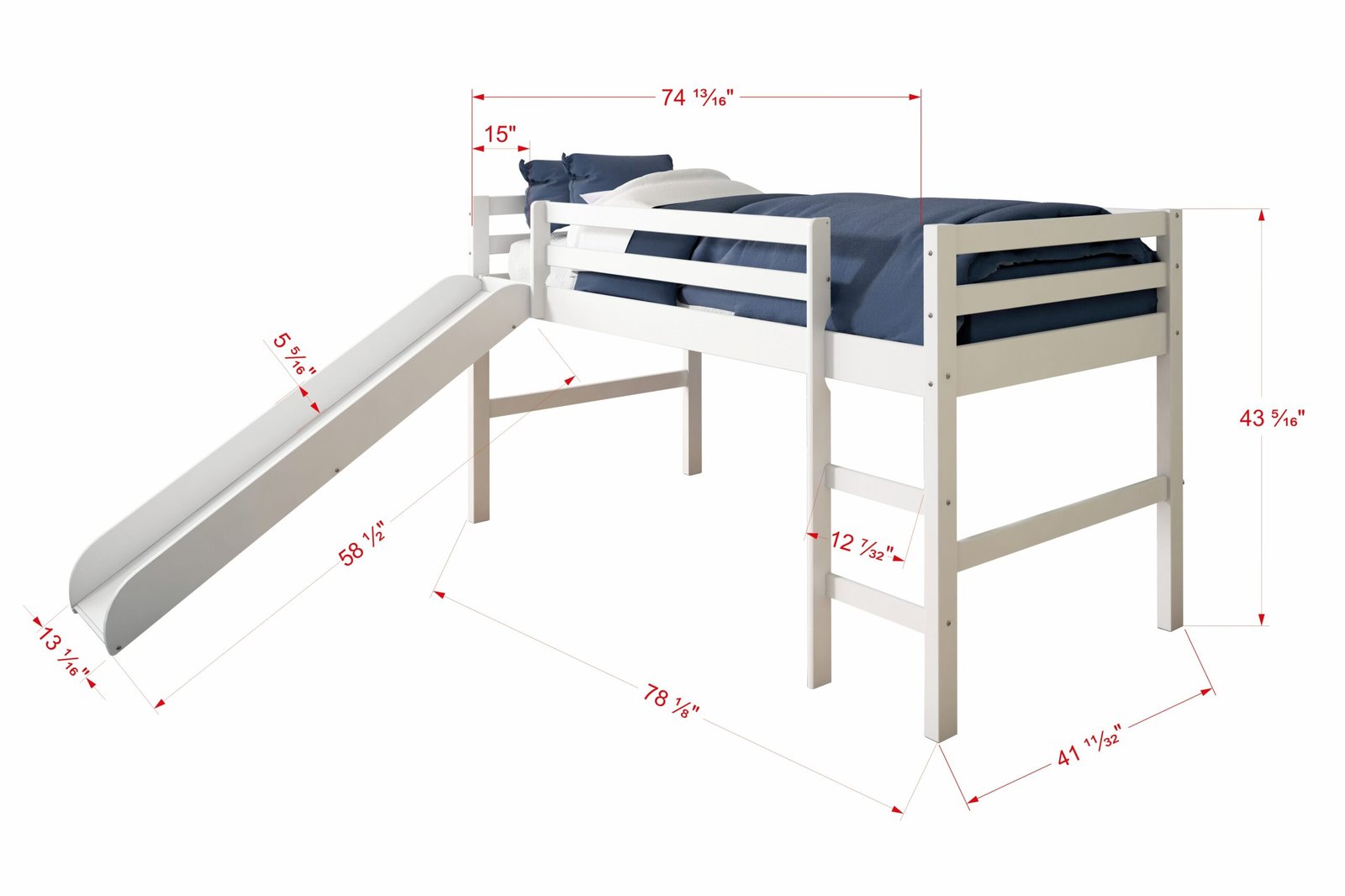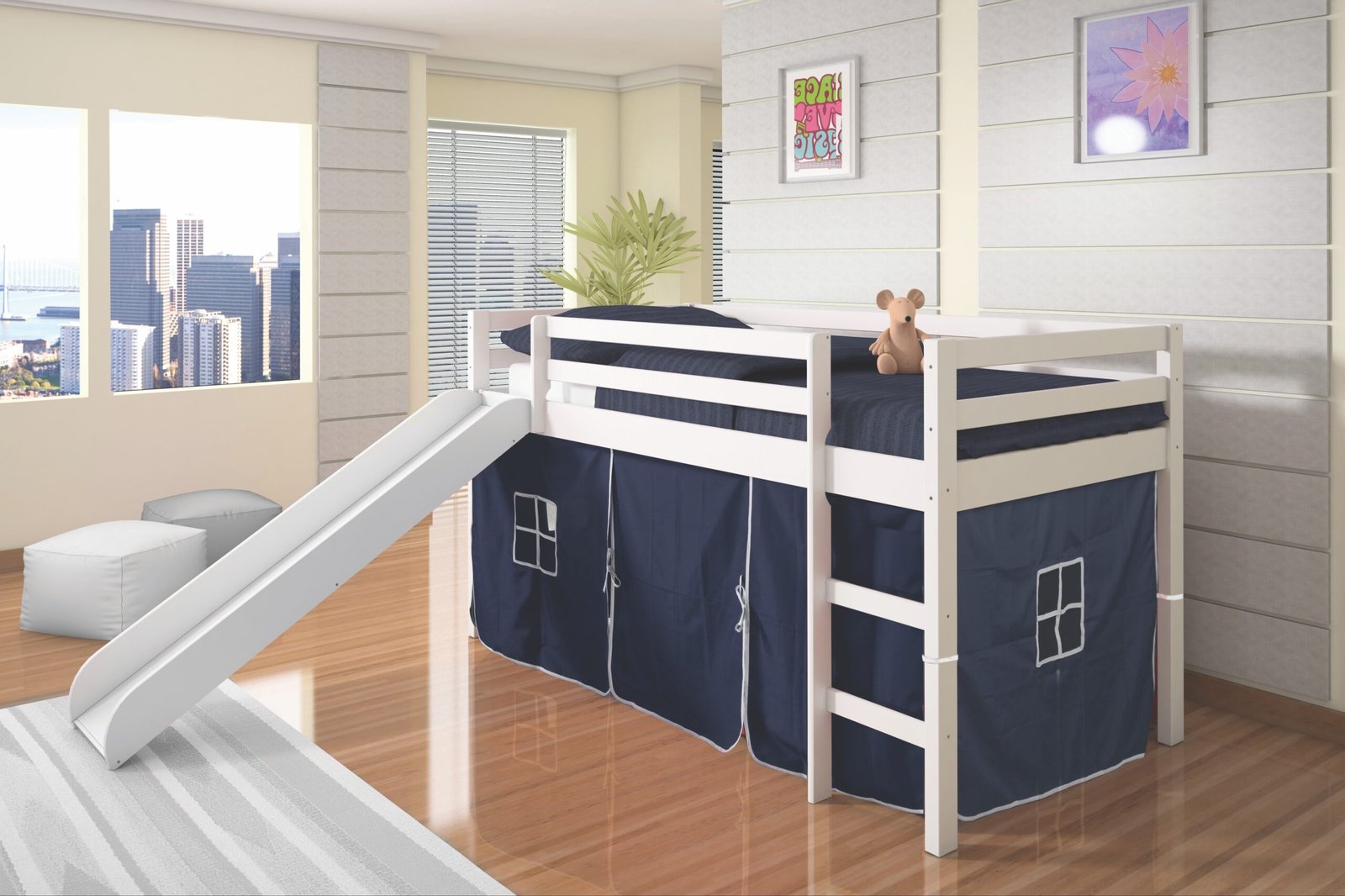 750-TW_750C-TB Twin Tent Loft W/Slide White Finish with Blue Tent