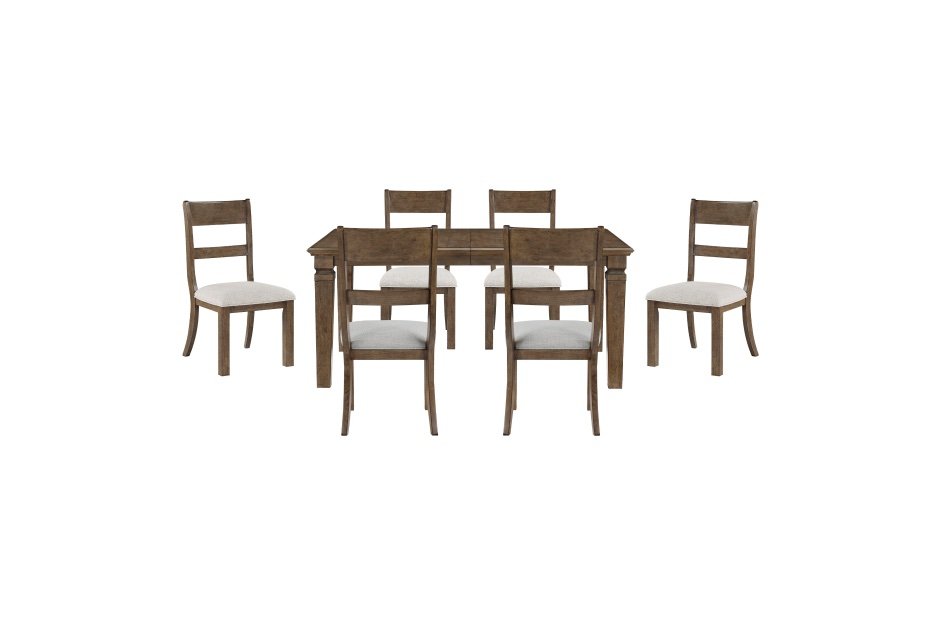 Elevate your dining space with our versatile dining collection, crafted from durable birch veneer, wood, and engineered wood in a warm light brown finish. The extendable dining table effortlessly transforms to accommodate up to 6 guests, perfect for both intimate meals and larger gatherings. Complement your table with our stylish and comfortable side chairs, featuring sturdy wood frames and generously padded seats upholstered in durable textured fabric. Designed with a classic charm and practical functionality, this collection is ideal for traditional, transitional, or farmhouse-inspired interiors, creating a welcoming and inviting atmosphere for any home.