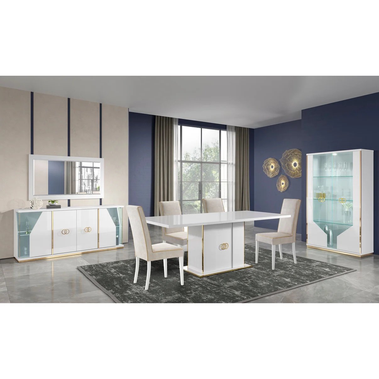 | 7PC did if room set | Buffet and Mirror, Vitrine, extra chairs, 7PC Dining Room Set |