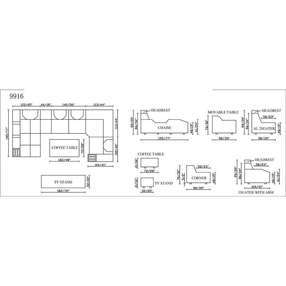| Sectional- MI-9916 Matrix (Black/W) | Sectional -MI-9916 Matrix (Black/W), TV Stand, Coffee Table |