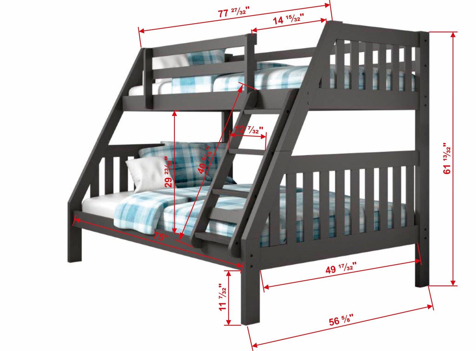 T/F Mission Bunkbed Dark Grey With Slat-Kits – Mattress Ready 1018-3TFDG Dark Grey