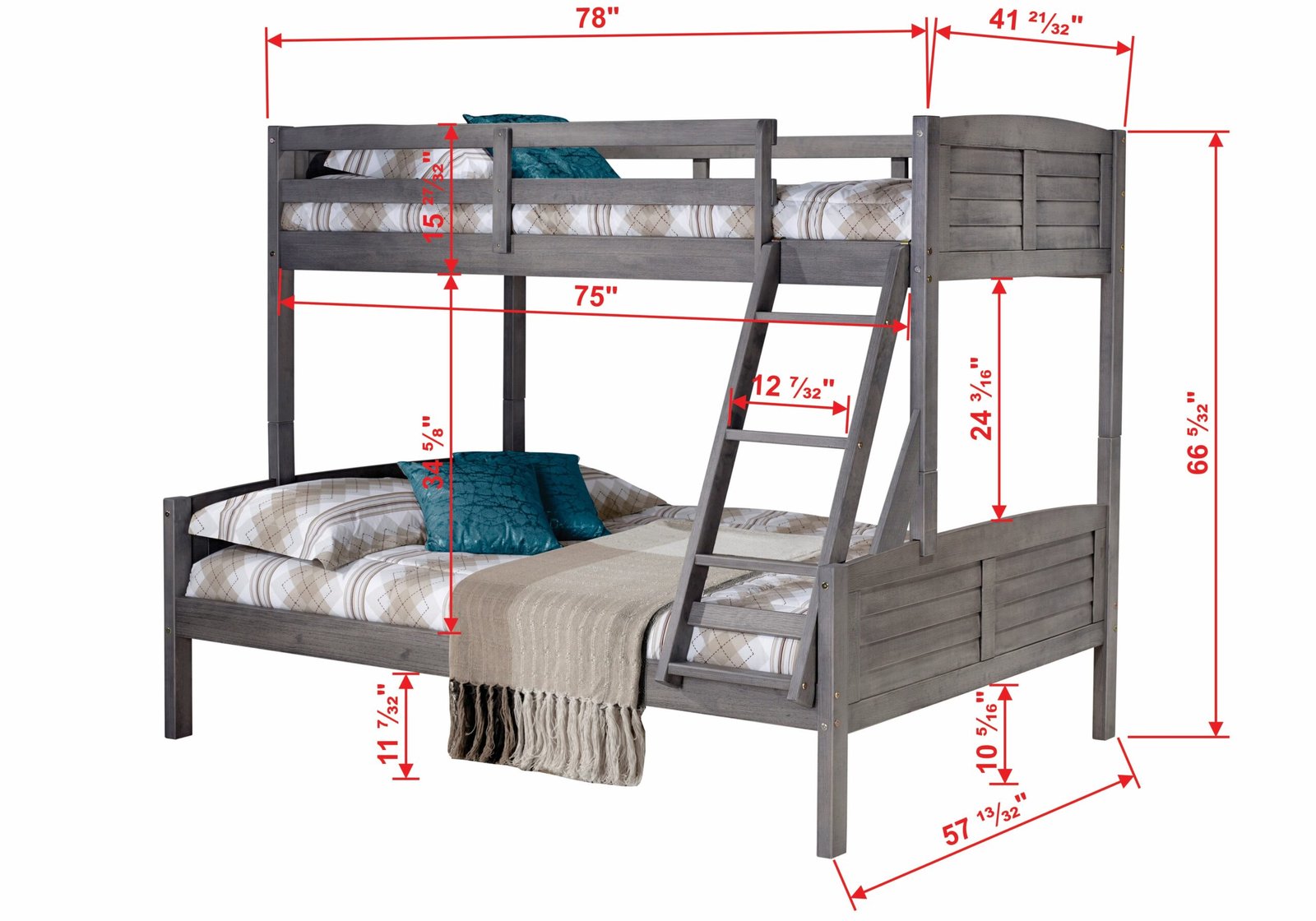 Twin/Full Louver Bunkbed With Slat-Kits – Mattress Ready 2012-TFAG Antique Grey $599